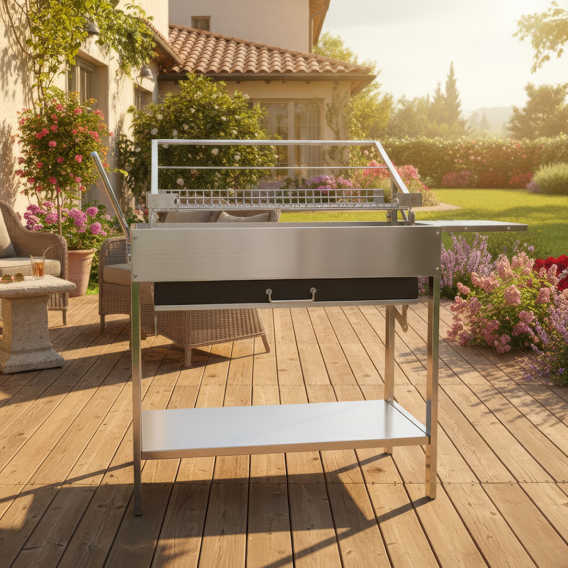 Zastosowanie stali nierdzewnej gwarantuje odporność na wysokie temperatury oraz warunki atmosferyczne, co przekłada się na długą żywotność urządzenia. Odpowiednio dobrane proporcje i wymiary konstrukcji zapewniają stabilność podczas pracy, a jednocześnie oferują dużą powierzchnię grillową, pozwalającą komfortowo przygotować potrawy dla kilku osób jednocześnie.